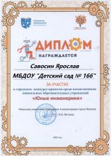 В октябре 2025 года в дошкольных учреждениях города Иванова состоялся городской конкурс проектов «Юные инженерики». Инициатором и организатором мероприятия выступил детский сад № 47 при поддержке управления образования Администрации города Иванова. Воспитанник нашего детского сада группы "Звёздочки" Савосин Ярослав также принял активное участие в этом конкурсе.