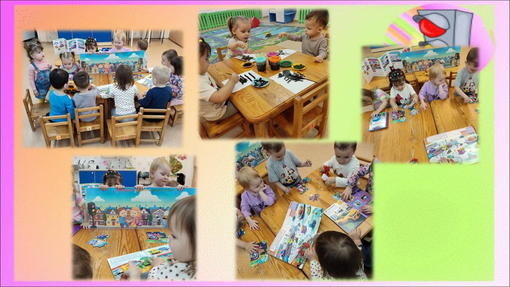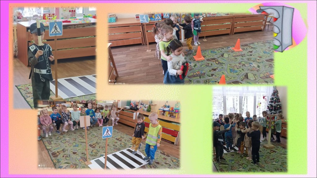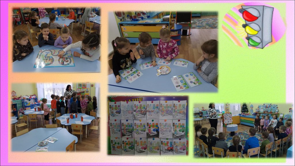 С детьми были проведены тематические беседы о правилах поведения на дороге, в транспорте и на улице, о безопасности на дороге, о дорожных знаках, видах транспорта, детском кресле, а также о правилах поведения на улицах и в городе. Организованы дидактические и сюжетно-ролевые игры, такие как "Улица и пешеходы", "Светофор", "Автомастерская", "Наша улица", "Поставь дорожный знак" и другие. Также оформлены выставки рисунков на темы "Я и дорога" и "Правила дорожной безопасности".